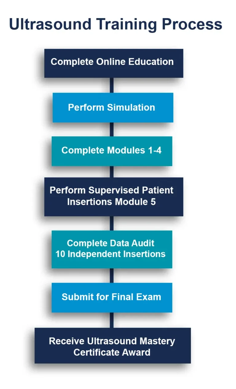 The Ultrasound Mastery Certificate Training benefits your facility by providing clinicians with validated skill performance credentials. Those who take the Ultrasound Mastery Learning Exam and pass with a score of 80 or above will receive Ultrasound Mastery status and be included in the Ultrasound Mastery Registry on the PICC Excellence website, showcasing your organization’s commitment to excellence in vascular access care.